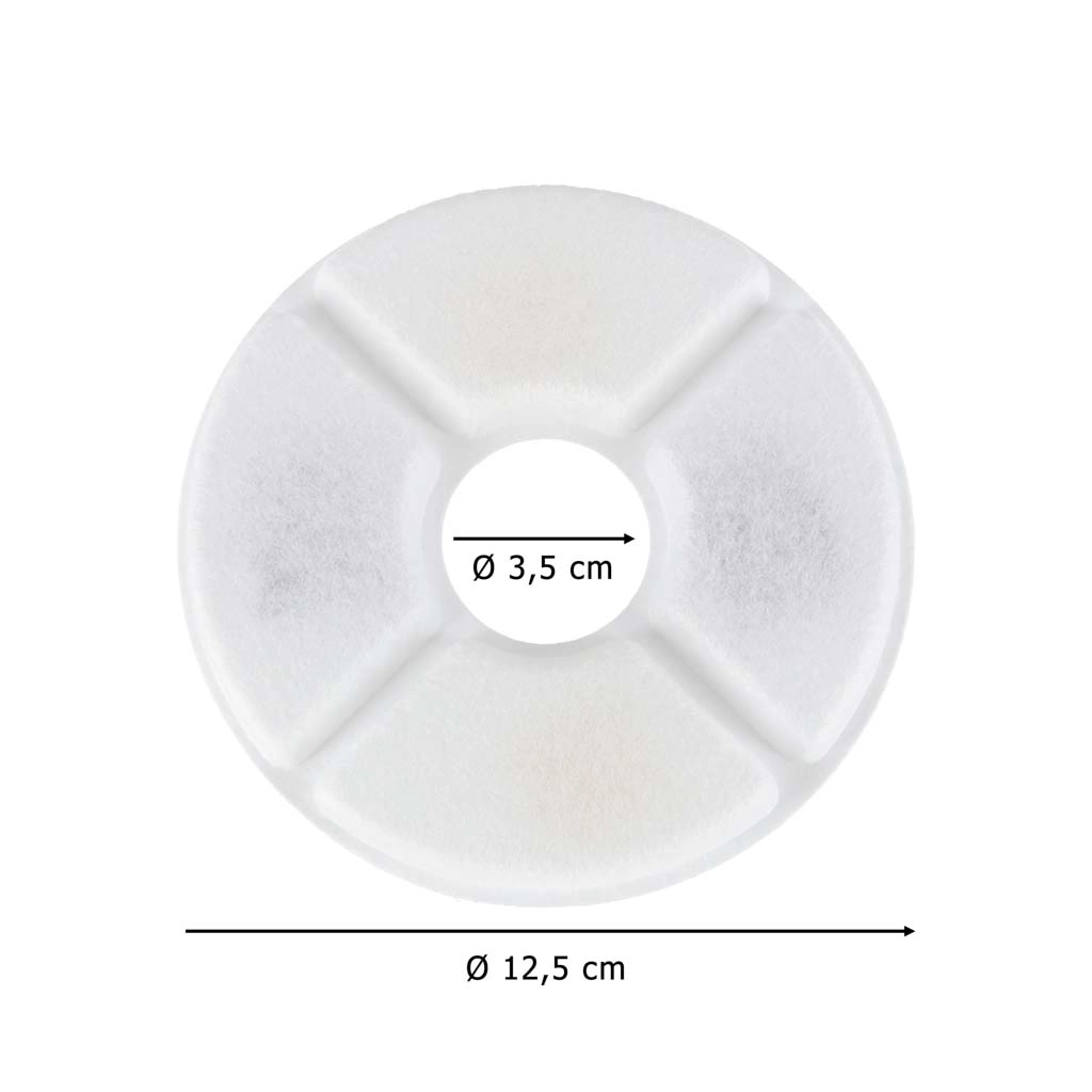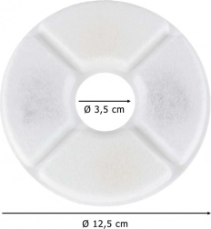 A szűrők átmérője 12,5 cm, középső nyílásuk 3,5 cm, így könnyen illeszkednek a legtöbb, központi oszloppal ellátott, kerek itatóba. A telepítés gyors és szerszámmentes – csak helyezze be, öblítse át, és már használhatja.