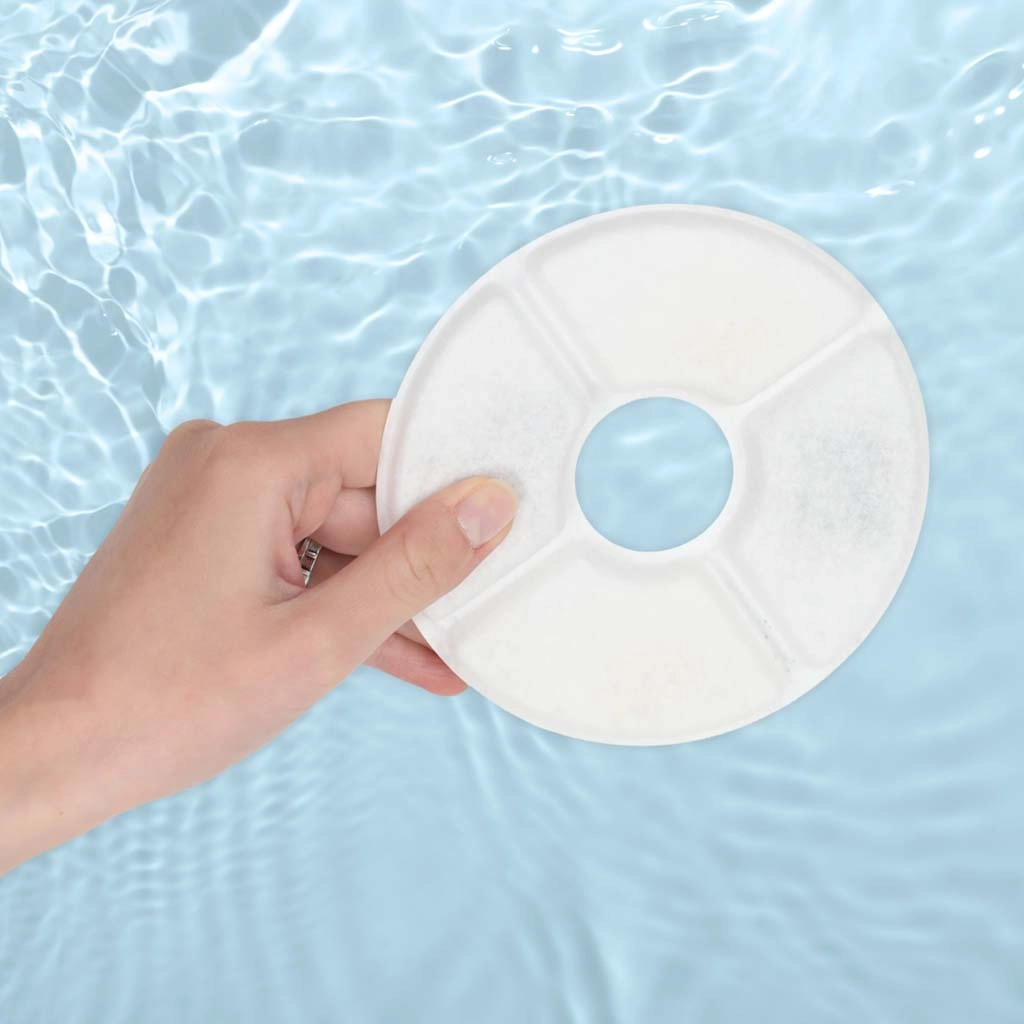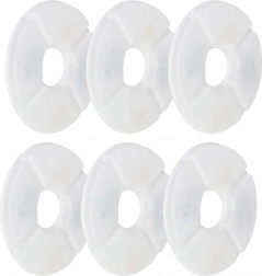 Ez a készlet 6 darab, állatitókhoz tervezett kör alakú szűrőt tartalmaz. Az aktív szén és az ioncserélő gyanta kombinációjának köszönhetően javítják a víz ízét és minőségét, csökkentik a szagokat és felfogják a finom részecskéket. A rendszeres szűrőcsere támogatja kedvence jobb folyadékfogyasztását, és segít az itatót kifogástalan állapotban tartani.
