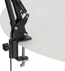 A csomagban megtalálható a stabil, kerek talp és az asztallap szélére rögzíthető csipesz (max. 5 cm) is. Válassza az Ön munkateréhez illő megoldást – az asztalon vagy helytakarékosan, csipesszel.