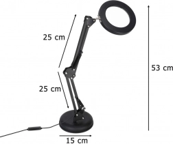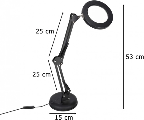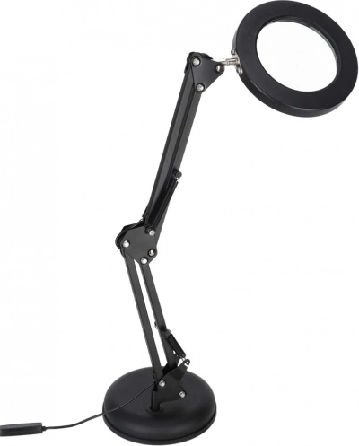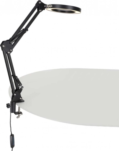 Ez az elegáns, fekete LED lámpa a 3x nagyítót és a megvilágítást egyesíti, ezért kiválóan szolgál makettezéshez, varráshoz, elektronikához, kézműves alkotáshoz, valamint apró betűk olvasásához. A kör alakú LED gyűrű egyenletes, nem vakító fényt ad hű színvisszaadással (CRI > 80), hogy a részletek élesen és kényelmesen láthatók legyenek.