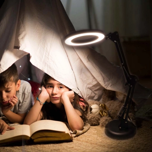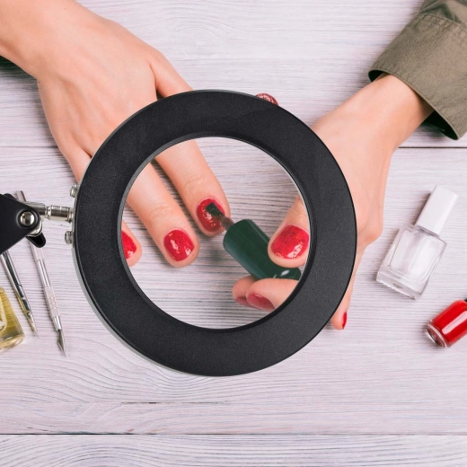 A kör alakú LED gyűrű a 3x nagyítót öleli körbe, így a legapróbb részleteket is tisztán és kényelmesen láthatja – ideális kézmunkához, elektronikához és apró betűk olvasásához.