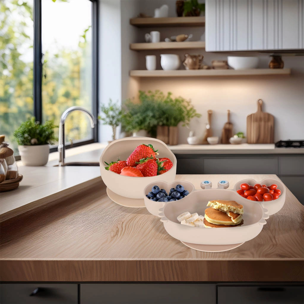 A szilikon tapadókorongok erősen a helyükön tartják az edényeket, így minden étkezésnél megkönnyítik a rendrakást.