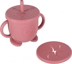 Sokoldalú pohár kétféle tetővel és szívószállal: cseppmentes nasitartóként és szívószálas itatópohárként is használható. Ergonomikus fülek az egyszerű fogáshoz.