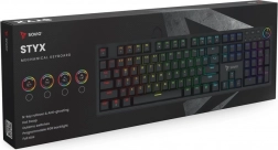 A Savio Styx teljes méretű mechanikus billentyűzet játékhoz és munkához. Kínál hot-swap funkciót a kapcsolók egyszerű cseréjéhez, csendes és pontos OUTEMU BROWN kapcsolókat, teljes RGB háttérvilágítást 21 móddal, N-key rollovert és anti-ghostingot a hibátlan leütésekhez, valamint praktikus multimédiás tárcsát a hangerő és a fények vezérléséhez.