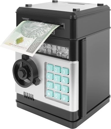 Az elektronikus széf gyerekeknek vonzó alternatíva a hagyományos perselyhez képest. Lehetővé teszi a bankjegyek és érmék biztonságos tárolását. A gyerek a megtakarításait a helyes PIN kód megadása után veheti ki, ami igény szerint beállítható.