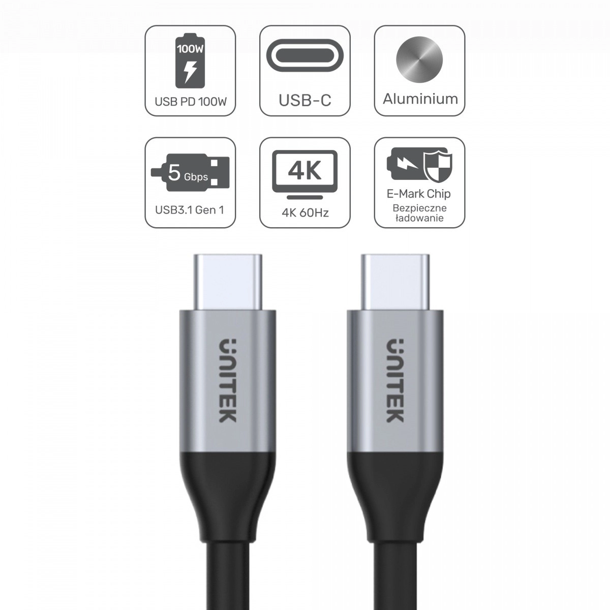 Ideális kábel modern laptopokhoz, telefonokhoz és tabletekhez USB‑C csatlakozóval. Támogatja a gyors töltést Power Deliveryvel akár 100 W-ig (20 V/5 A), és kiváló képtovábbításra is – 4K 60 Hz-et kezel DisplayPort Alt Mode-on keresztül vagy kompatibilis Thunderbolt 3/4 portokon. Az 5 Gbps adatátviteli sebesség kényelmes fájlmásolást, mentést és külső meghajtókkal végzett munkát biztosít.