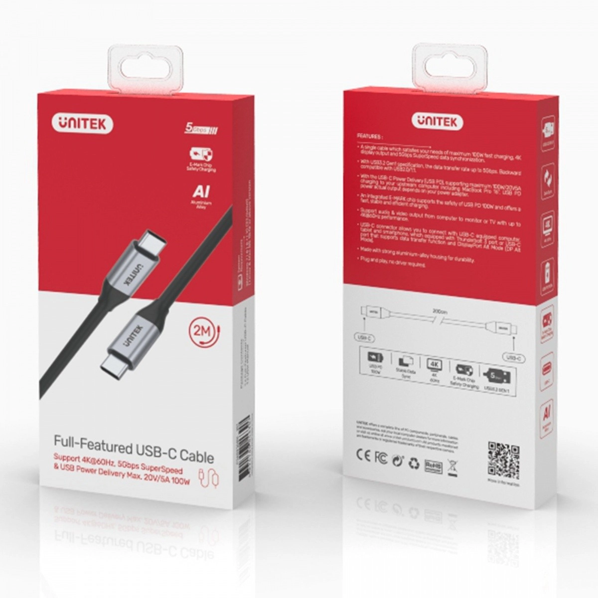 A masszív alumínium végek és az integrált E‑MARK chip automatikusan biztonságos áramparamétereket választ, így a töltés és a szinkronizálás gyors és megbízható. A 2 m hossz kényelmes hatótávot ad otthon, irodában és útközben – a laptop 4K monitorhoz való csatlakoztatásától a telefon TV-hez kötéséig.
