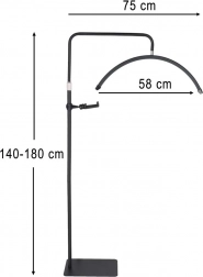 Nehéz talp, 140–180 cm magasság és integrált telefontartó a kényelmes felvételhez és a szalonmunkák dokumentálásához.