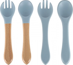 Az állítható szilikon előke mély zsebével a legtöbb maradékot felfogja és védi a ruhát. Kétféle evőeszközkészlet (szilikon és fanyelű) támogatja a fogás és a kanalazás különböző tanulási szakaszait. A fedeles, szívószálas bögre segít az önálló ivás gyakorlásában felesleges kilöttyenés nélkül.
