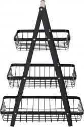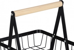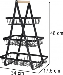 Rendszerezze konyháját, kamráját vagy étkezőjét ezzel az elegáns, háromszintes állvánnyal. A matt fekete, masszív fémkonstrukció és a kényelmes fa fogantyú stabilitást, tartósságot és könnyű hordozhatóságot biztosít. A lépcsőzetes elrendezésnek köszönhetően a tartalom mindig szem előtt és kéznél van.