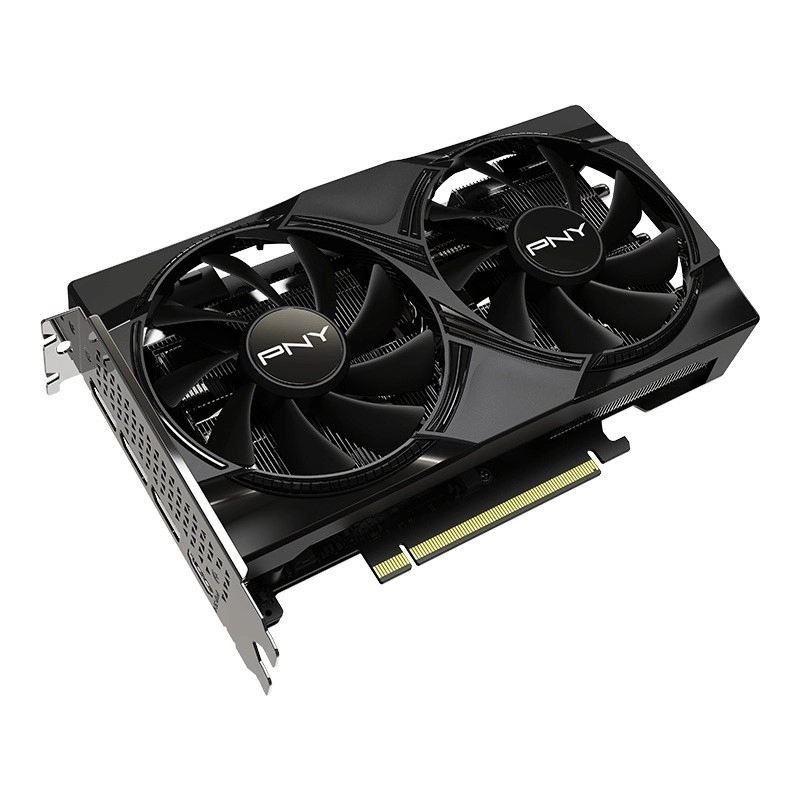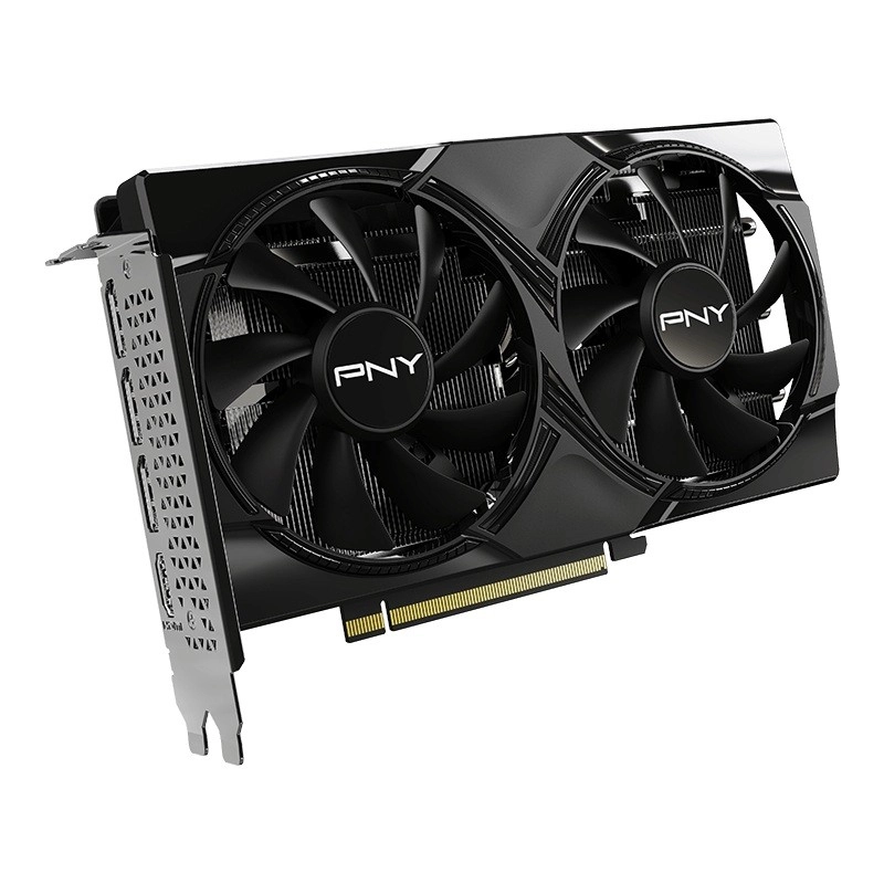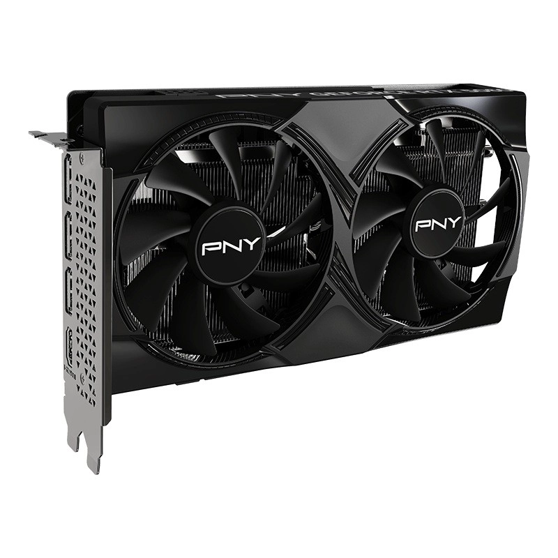 A PNY GeForce RTX 5060 8GB kiváló teljesítmény–hatékonyság arányt kínál kompakt, kétslotos kivitelben. Két nagy axiális ventilátor és a masszív alumínium hűtő heatpipe-okkal kézben tartja a hőmérsékletet és a zajt, míg a fém backplate fokozza a merevséget és javítja a hőelvezetést. Ideális választás magas FPS-es játékhoz, streameléshez és kreatív alkalmazások gyorsításához.