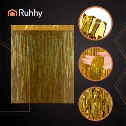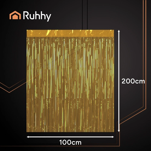 A 100 × 200 cm-es RUHHY arany bojtfüggöny egyszerű módja annak, hogy az ünnepségeknek és fotósarkoknak azonnali WOW-hatást adjon. A öntapadós szalaggal pillanatok alatt felrögzítheti a falra vagy az ajtókeretre, fényes, metálos felülete pedig elegáns hangulatot teremt születésnapokra, esküvőkre, szilveszterre és tematikus bulikra.