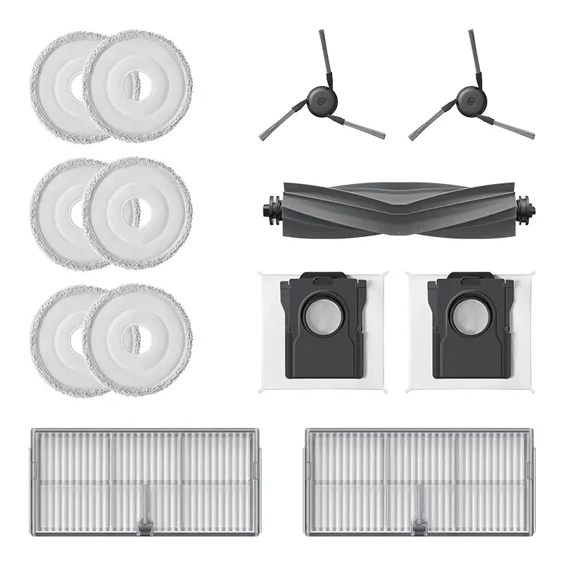 A MOVA P10 Pro Ultra robotporszívóhoz készült teljes tartozékkészlet biztosítja a állandó teljesítményt és a hatékony takarítást keménypadlón és szőnyegeken egyaránt. Tartalma: fő gumikefe, 2 oldalkefe, 2 porfogó szűrő, 2 porzsák és 6 felmosóbetét (3 pár). Minden teljes mértékben kompatibilis a mopemelés és az automatikus ürítés funkcióival.