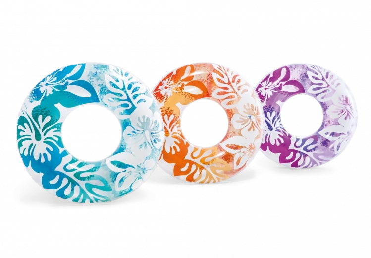 Élvezd a nyarat az INTEX 91 cm átmérőjű felfújható úszógumijával, hawaii virágmintával. Tartós anyag, kényelmes lebegés és szórakozás a medencében és a tengernél 9 éves kortól.