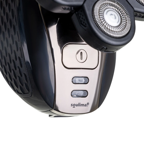 A SOULIMA 6 az 1-ben ötvözi a nagy teljesítményű, vezeték nélküli, több forgófejes borotvát a precíz trimmelő feltétekkel. Ergonomikus kialakítása kényelmes fogást ad, és követi az arc és a fej kontúrjait a gyors, kényelmes, húzásmentes eredményért.