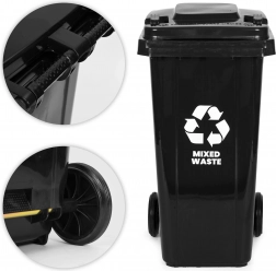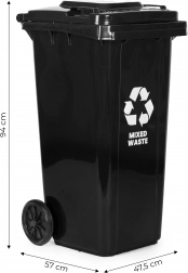 A masszív, 120 literes vegyes hulladék gyűjtő edény minőségi HDPE-ből készült, amely ellenáll az UV-sugárzásnak, a vegyszereknek és a mechanikai sérüléseknek. A tömített fedél megakadályozza a víz bejutását és a szagok kiszivárgását, így a környezet tiszta és higiénikus marad. A ergonomikus fogantyúknak és a fém tengelyen futó gumírozott kerekeknek köszönhetően a tároló teljesen megrakva is kényelmesen mozgatható.