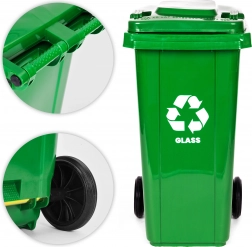 A szelektív hulladékgyűjtés rendje egyszerűbb a 120 literes zöld üveggyűjtő konténerrel. A masszív HDPE ház ellenáll az UV-sugárzásnak, a vegyszereknek és az ütődéseknek, így ideális mindennapos kültéri és beltéri használatra. A tömített fedél gátolja az eső bejutását és a szagok kiszökését, így a környezet tiszta és kellemetlen hatásoktól mentes marad.