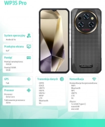Az OUKITEL WP35 Pro 5G egy strapabíró okostelefon extrém körülményekhez, kivételes üzemidővel és gyors 5G-vel. Kínál nyolcmagos MediaTek Dimensity 6300 chipsetet, 12 GB RAM-ot (virtuális memóriával akár 36 GB), 512 GB tárhelyet, amely microSD-vel akár 2 TB-ig bővíthető, 6,6" FHD+ kijelzőt Gorilla Glass 5 üveggel és 64 MP-es SONY kamerát éjjellátással. Megfelel az IP68/IP69K és MIL‑STD‑810H szabványoknak, és a 11 000 mAh-s akkumulátor 33 W-os gyorstöltéssel igazán hosszan bírja.