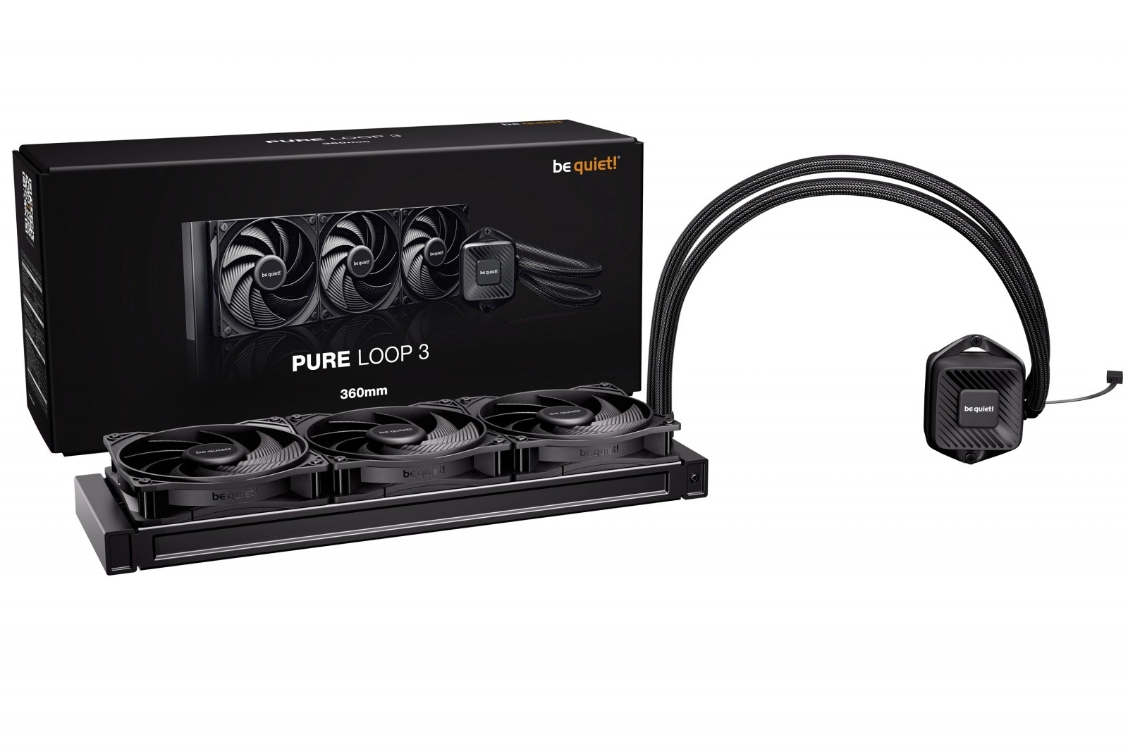 Be quiet! Pure Loop 3 360 mm egy nagy teljesítményű és rendkívül halk all‑in‑one vízhűtés modern és tuningolt konfigurációkhoz. Magas hűtési teljesítményt kínál minden fogyasztói processzorhoz, PWM szivattyút 6 pólusú motorral a minimális vibrációért, valamint három 120 mm‑es Pure Wings 3 ventilátort magas statikus nyomással és alacsony zajszinttel. Öröm a ventilátorok soros (daisy‑chain) összekötése, a könnyű szerelés hajlékony csövekkel és az elegáns, minimalista dizájn is.