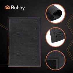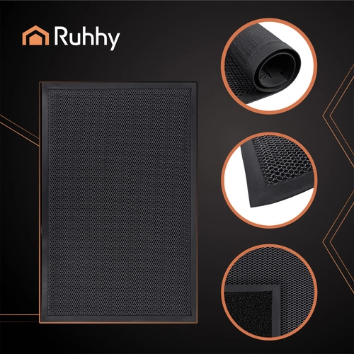 A RUHHY lábtörlő megbízható megoldás ház-, lakás-, iroda- és üzletbejáratokhoz. Masszív és tartós kialakítása a 3D rácssal hatékonyan lekaparja a sarat, homokot és vizet a lábbelikről, így a belső tér tovább marad tiszta. A megmagasított szélek segítenek a szennyeződéseket és nedvességet a lábtörlőn tartani, és megakadályozzák a sarkok felpöndörödését.