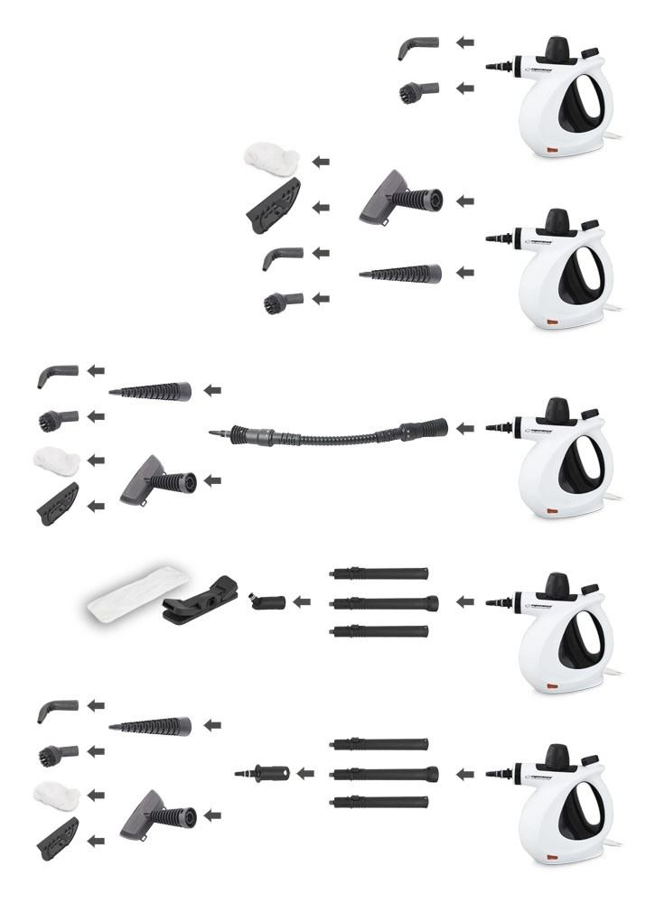 A kompakt kézi gőztisztító, a ESPERANZA ASALTO vegyszerek nélkül tisztít, fertőtlenít és felfrissít. A legfeljebb 115 °C-os gőznek, a 3 bar nyomásnak és akár 16 tartozéknak köszönhetően könnyedén eltávolítja a baktériumokat, a zsiradékot és a vízkövet csempékről, fugákból, üvegekről, csaptelepekről és textíliákról. Az ergonomikus kialakítás, a gyermekzár és a hosszú, 3 m-es kábel biztonságos és kényelmes használatot biztosít.