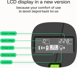 Tartsa működésben számítógépét, routerét és egyéb érzékeny eszközeit hirtelen áramszünet esetén is. Ez a módosított szinuszhullámú UPS stabilizálja a kimeneti feszültséget, és a gyors átkapcsolási időnek köszönhetően minimalizálja az adatvesztés kockázatát. A beépített LCD kijelző kulcsfontosságú üzemi adatokat jelenít meg az állapot könnyű ellenőrzéséhez.
