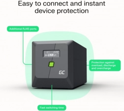 Megbízható 1000 VA / 700 W teljesítményű UPS a Green Cell-től, tiszta szinuszhullámmal, áttekinthető LCD kijelzővel és túlfeszültség-védelemmel (RJ45), amely megóvja elektronikáját az áramszünetektől, adatvesztéstől és a feszültségingadozásoktól. A gyors átkapcsolás (10 ms alatt, online 0 ms) biztosítja a csatlakoztatott eszközök megszakítás nélküli működését.