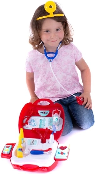 Szórakoztató orvosi készlet kis doktoroknak praktikus bőröndben, amely mindent tartalmaz a doktorosdihoz. Támogatja a fantáziát, a szerepjátékot és a finommotorikát. A könnyű műanyag eszközöknek, például a sztetoszkópnak, hőmérőnek vagy injekciónak köszönhetően a gyerekek biztonságosan kipróbálhatják a betegek ellátását és gondozását.