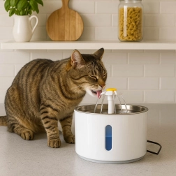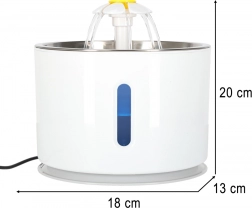 Az automata itatókút kutyáknak és macskáknak folyamatos vízkeringést biztosít, amelynek köszönhetően a víz hűvösebb, tisztább és vonzóbb, így kedvence gyakrabban iszik. A rozsdamentes felsőrész higiénikus és könnyen tisztítható, a betekintő kék LED-világítással mutatja az aktuális szintet.