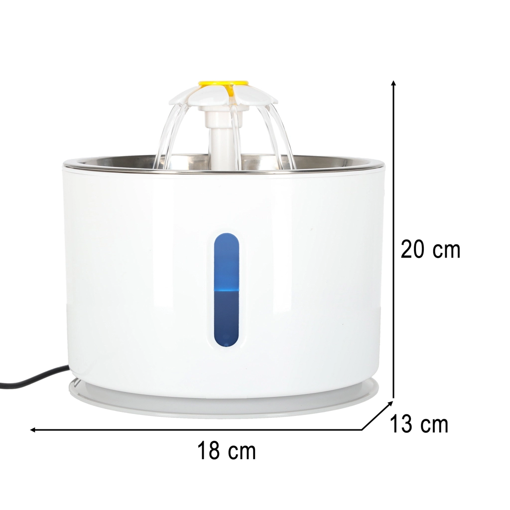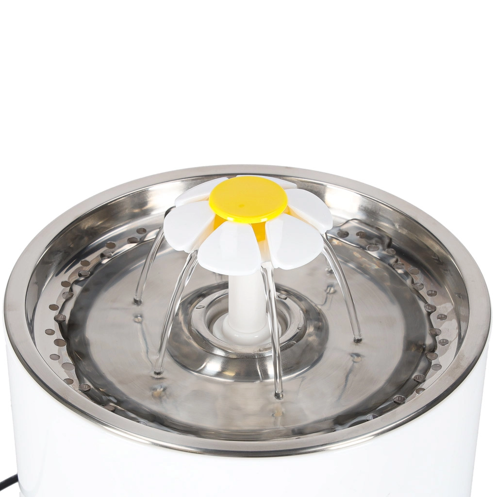 A többágú, virág alakú kifolyó finom vízsugarakat hoz létre, amelyek természetes módon motiválják a macskákat és kutyákat a gyakoribb folyadékfogyasztásra, és frissen tartják a vizet.