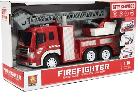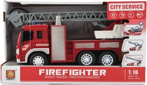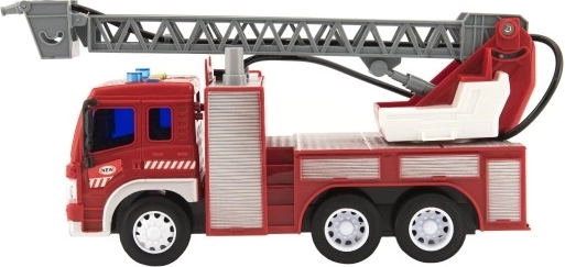 Lepje meg gyermekét egy tűzoltóautóval élethű funkciókkal! Az autó lendkerekes meghajtású, hangokat ad ki és villog. A kihúzható létrának és a vízpermetezés lehetőségének hála a tűzoltós játék még autentikusabb élményt nyújt. A teherautó hossza 30 cm, ami ideális a játékhoz és a tároláshoz is.