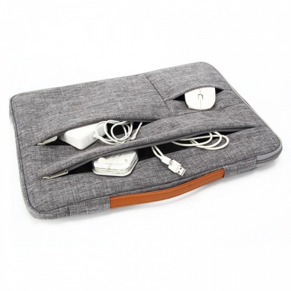 Átgondolt belső elrendezése tartalmaz egy fő rekeszt a laptopnak, valamint több elülső zsebet a hálózati adapter, egér, kábelek, külső meghajtók vagy memóriakártyák számára. A kétirányú cipzár megkönnyíti a készülék behelyezését és kivételét, a masszív felső fogantyú pedig kényelmes hordozást biztosít.