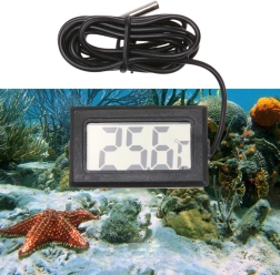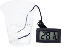 LCD kijelzős elektronikus hőmérő hosszú kábellel és szondával. A szonda elhelyezhető szinte bárhol, például akváriumban, terráriumban, hűtőszekrényben, fagyasztóban vagy üvegházban, ahol pontos hőmérsékletmérés szükséges -50 és 70 Celsius-fok között!