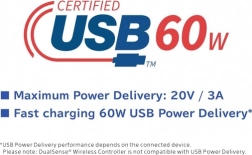 Figyelmeztetés: A vezeték nélküli DualSense vezérlő nem támogatja a gyorstöltést; az USB PD tényleges teljesítménye a csatlakoztatott eszköztől függ.