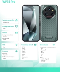 Az OUKITEL WP35 Pro a masszív felépítést 14,9 mm-es vékony profillal és hosszú üzemidővel ötvözi a 11 000 mAh-s akkumulátornak, a 33 W-os gyorstöltésnek és a fordított töltésnek köszönhetően. A 6,6" Full HD+ (2408 × 1080) kijelző 450 nites fényerővel és Corning Gorilla Glass 5 védelemmel éles képet biztosít terepen is.