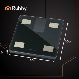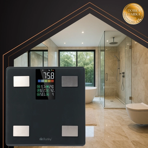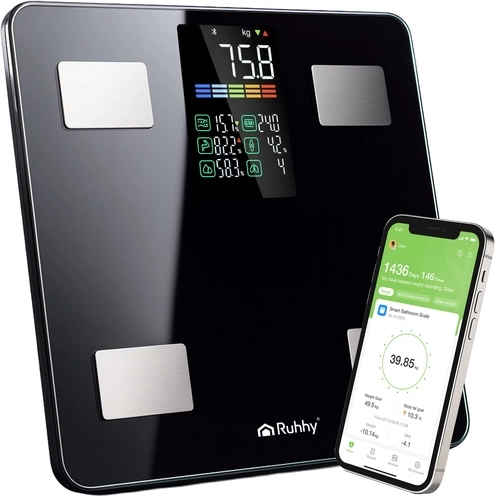 A RUHHY okos fürdőszobai mérleg akár 226 kg-ig pontos tömegmérést kínál, és a BIA technológiának köszönhetően fejlett testösszetétel-elemzést végez. A telefonon lévő Feelfit alkalmazással párosítva BMI-t, testzsírszázalékot, testvíz-arányt, izom- és csonttömeget, zsigeri zsírt és további mutatókat láthat áttekinthető grafikonokon. A modern LCD kijelző, az automatikus be- és kikapcsolás, valamint a tartós edzett üveg ideálissá teszi otthonra és edzőterembe egyaránt.