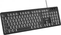 A minimalista, karcsú ház könnyedén elfér a monitor alatt vagy az asztal kihúzható polcán. Az 1,4 m hosszú kábel megkönnyíti a rendezett kábelvezetést és a tiszta munkakörnyezetet. A LED háttérvilágítás félhomályban javítja a billentyűk olvashatóságát és csökkenti az elgépeléseket.