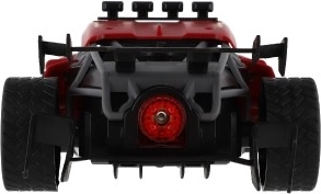 A piros RC sportautó a kisebb és nagyobb versenyzőknek egyaránt örömet szerez. A 2,4 GHz-es vezérlésnek köszönhetően egyenletes irányítást kínál előre/hátra és oldalirányban, a puha gumiabroncsok kiváló tapadást biztosítanak, a realisztikus kipufogó-hűtési effekt pedig igazi versenyhangulatot ad a vezetésnek. A karosszéria strapabíró és egészségre ártalmatlan műanyagból készült, így a megterhelőbb használatot is bírja.