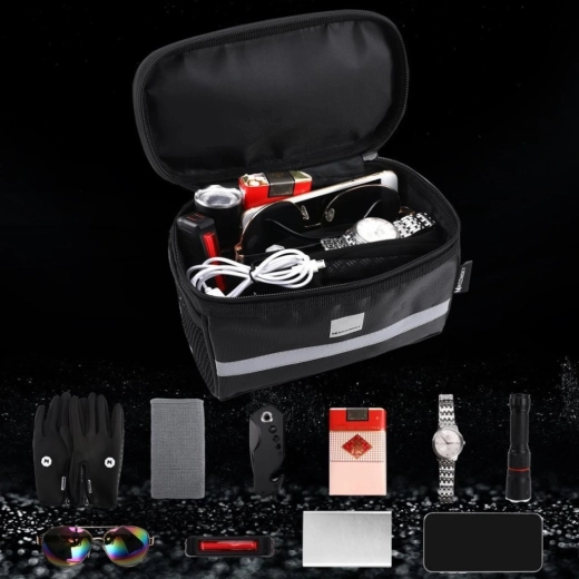 Tágas, kormányra rögzíthető kerékpártáska, tartós és könnyen tisztítható, vízálló poliészterből. Rendkívül hasznos rövidebb és hosszabb kerékpáros kirándulásokon egyaránt. A táska tágas fő rekesszel, 2 oldalsó zsebbel és térképtartó rekesszel rendelkezik. Emellett fényvisszaverő elemekkel van ellátva, amelyek növelik a biztonságot és sötétedés után láthatóbbá tesznek. A táska a kormányra tépőzáras pántokkal rögzíthető.