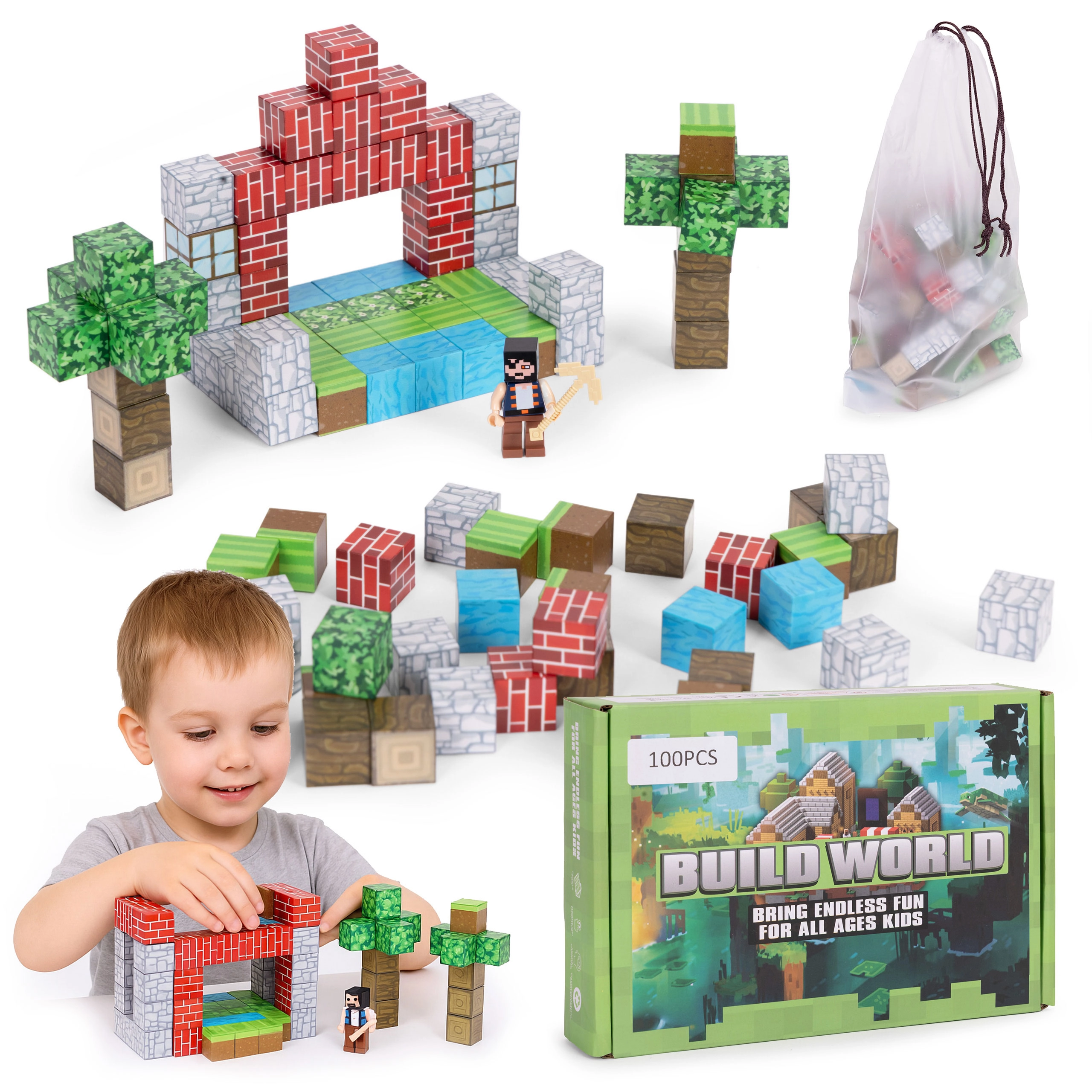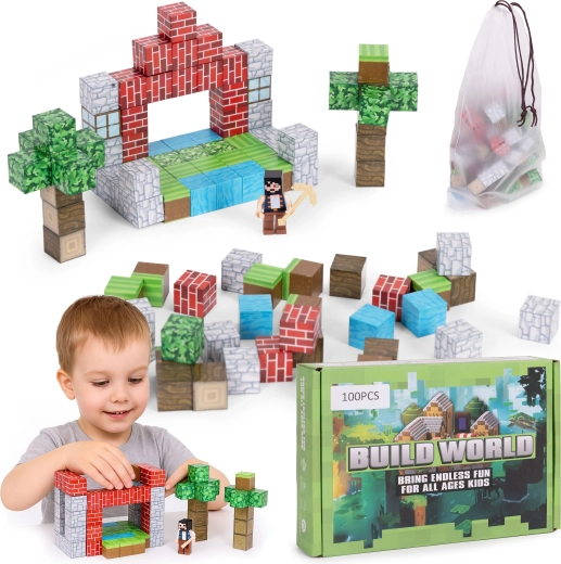 A 100 darabos készlet korlátlan építési lehetőséget kínál – az egyszerű formáktól a kifinomult modellekig. A játék fejleszti a finommotorikát, a türelmet és a kreativitást. Játék után mindent gyorsan elpakolhatsz a mellékelt összehúzható zsákba, amely megkönnyíti a szállítást és a tárolást.