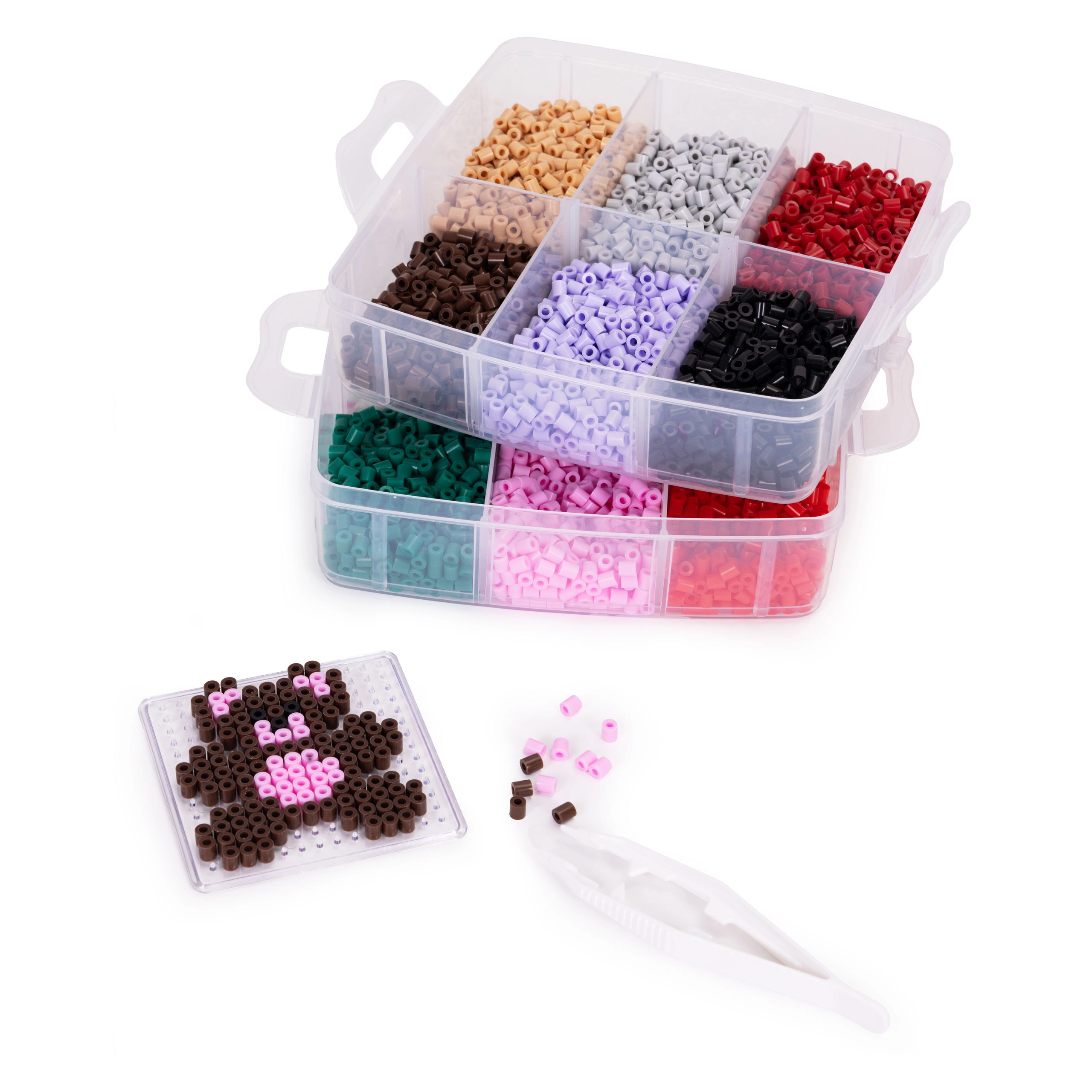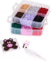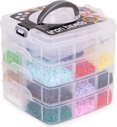 A csomag tartalma: akár 9000 gyöngy sokféle színben, 6 alaplap (kör, négyzet, csillag, szív stb.), 2 csipesz, vasalópapírok, dizájn sablonok és tágas rendező rekeszekkel. A rakásolható doboznak köszönhetően minden átláthatóan tárolható, készen áll a további alkotásra otthon és útközben is.