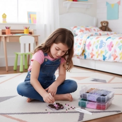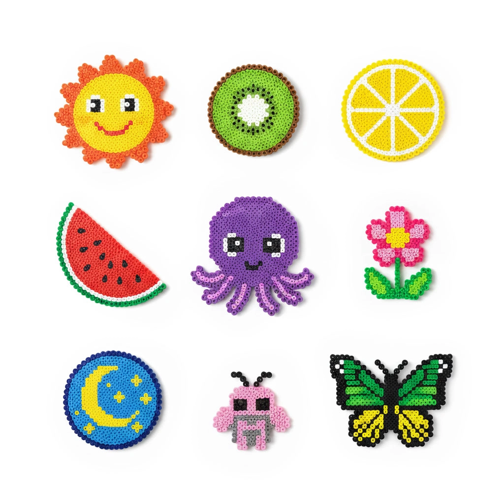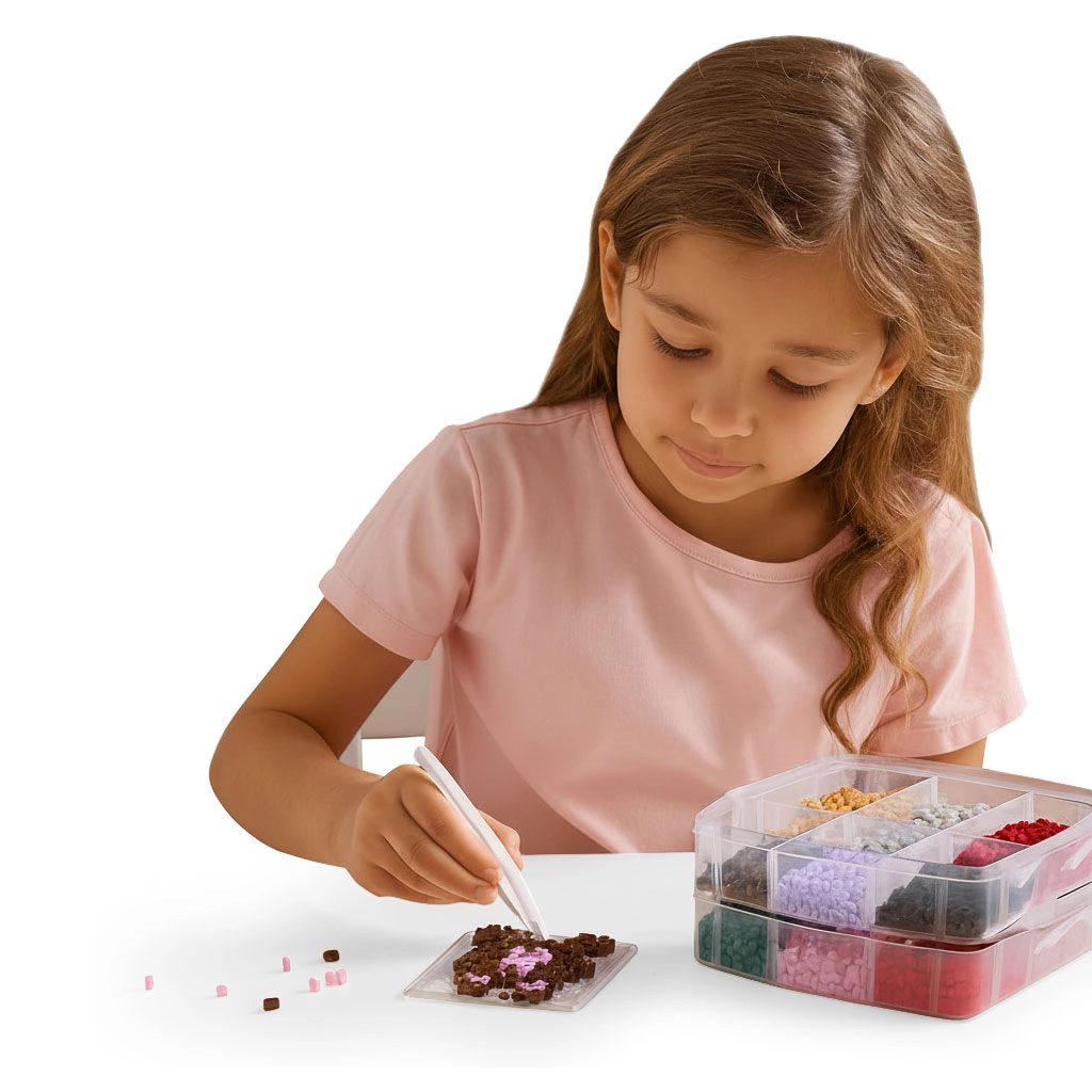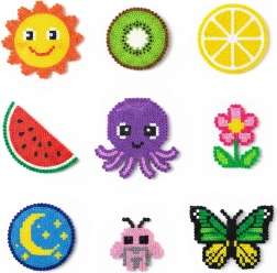 Nagy mennyiségű gyöngy széles színpalettában, amellyel a gyerekek állatkákat, szimbólumokat, díszeket és „pixel art” képeket rakhatnak ki – az egyszerű motívumoktól a kidolgozott mintákig.