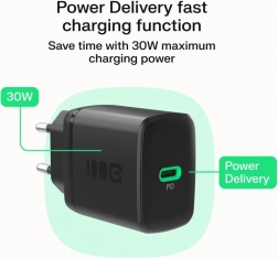 Kompakt hálózati töltő USB‑C porttal és 30 W teljesítménnyel, támogatja a Power Delivery gyors töltést okostelefonokhoz és más eszközökhöz. Intelligens töltésvezérlést, többlépcsős Multiprotection védelmet és univerzális kompatibilitást kínál telefonokkal, táblagépekkel és vezeték nélküli fülhallgatókkal.