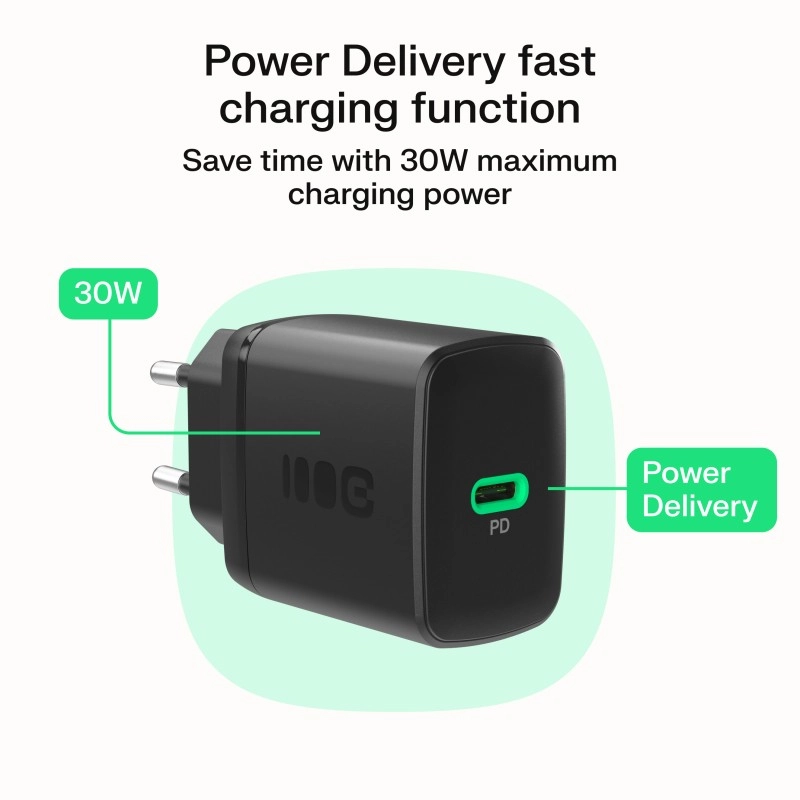 Élvezze a gyors és biztonságos töltést 30 W teljesítménnyel és a USB‑C Power Delivery technológiával. A töltő körülbelül 40 perc alatt nagyjából 80%-ra tölti telefonját, így kevesebbet vár és többre jut ideje. Kompakt méreteinek köszönhetően ideális otthonra, irodába és utazáshoz.