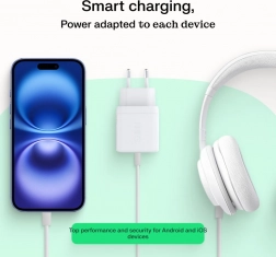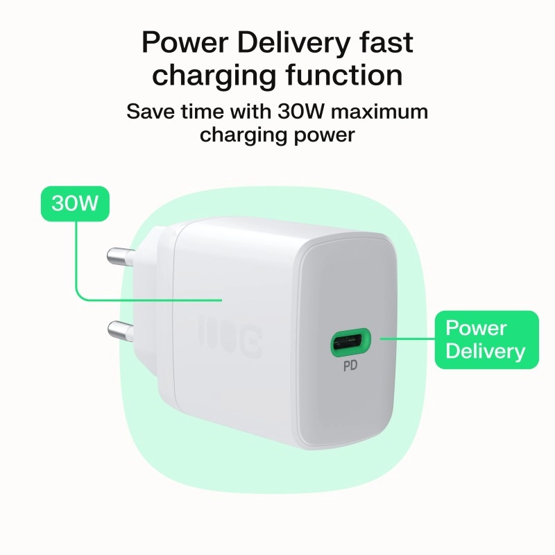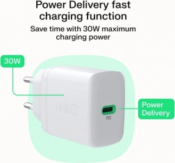 Használja ki a USB‑C Power Delivery 30 W gyors töltést, és töltse fel telefonját akár 80%-ra nagyjából 40 perc alatt. Az egyetlen USB‑C port számos modern eszközt képes táplálni, beleértve az Apple iPhone-t, a Samsung Galaxy-t, a Google Pixel-t és a vezeték nélküli fülhallgatókat is. A lekerekített sarkú kompakt ház ideális konnektorba otthon és utazáskor.