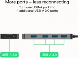 - Több port, kevesebb átkapcsolás: egy USB-A portból 4× USB-A 3.0.