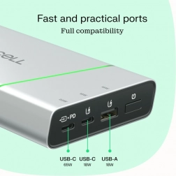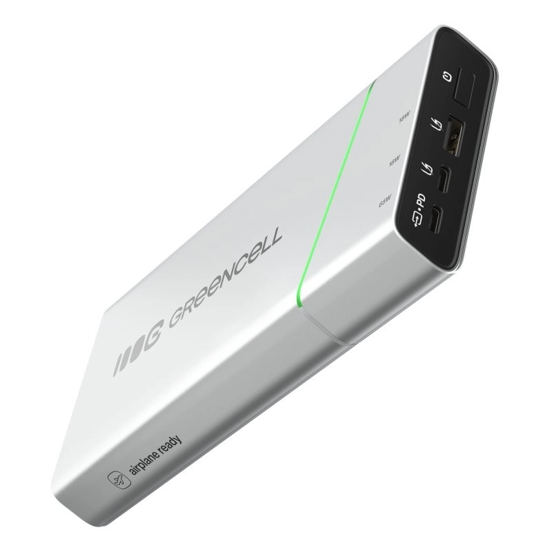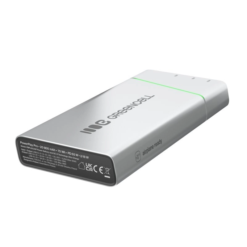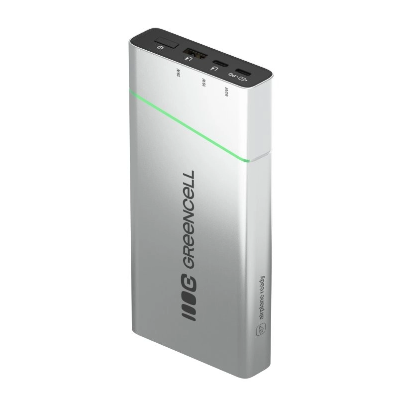 Sokoldalú energiaforrást keres útra és munkába? A GREENCELL PowerPlay Pro powerbank 20 800 mAh kapacitással és akár 65 W teljesítménnyel megbízhatóan ellátja energiával a laptopot, okostelefont, táblagépet és vezeték nélküli fülhallgatót. Az USB‑C Power Delivery és az Ultra Charge támogatás révén kompromisszumok nélküli, maximális töltési sebességet kap.