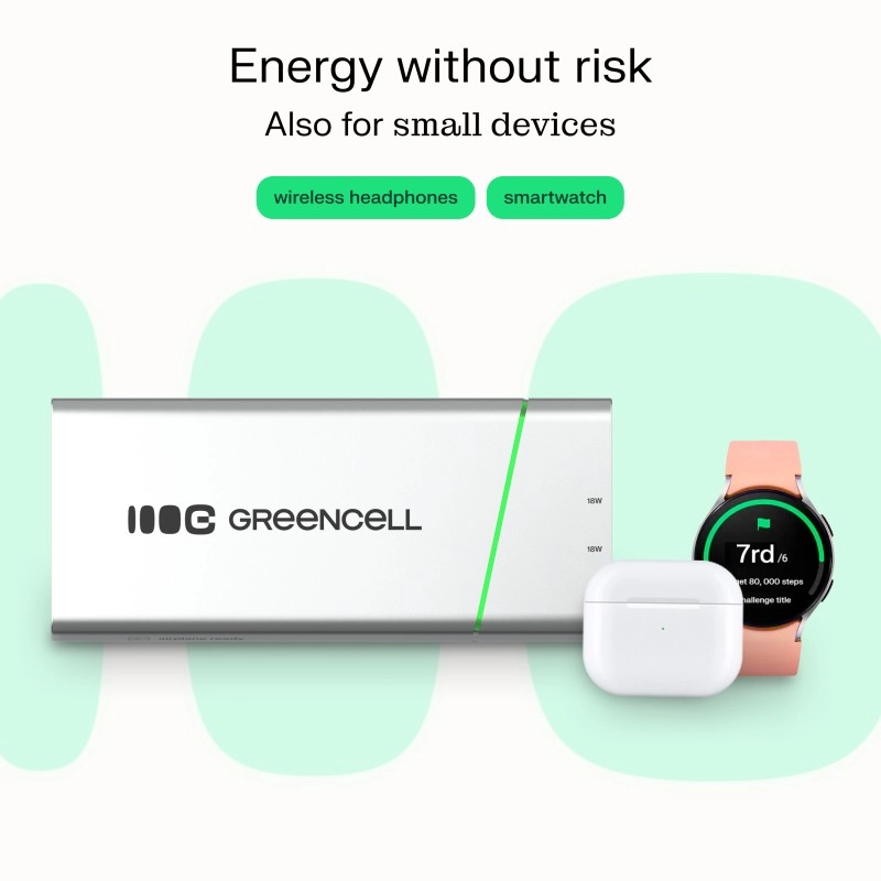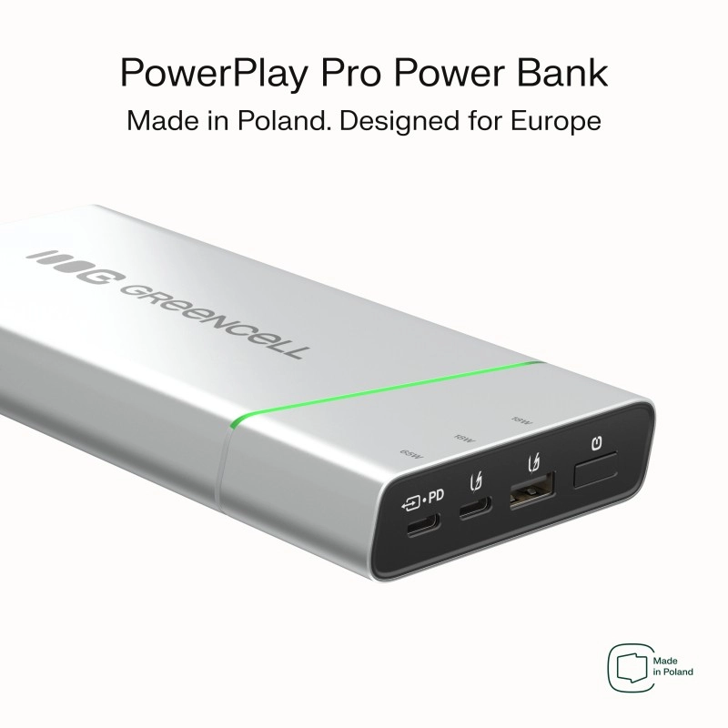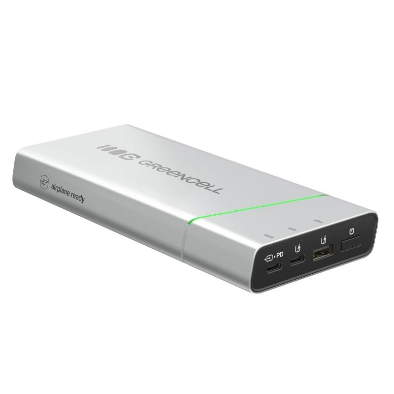 A kompakt és nagy teljesítményű GREENCELL PowerPlay Pro powerbank 20 800 mAh kapacitást és USB‑C Power Delivery 65 W gyorstöltést kínál. A 2× USB‑C és 1× USB‑A portnak, valamint az Ultra Charge technológiának köszönhetően villámgyorsan feltölti a laptopot, a telefont és a fülhallgatót is. Masszív kialakítás, akár 1000 töltési ciklus, továbbá teljes védelem túlfeszültség, rövidzár és túltöltés ellen. Utazáshoz ideális és repülőre felvihető.