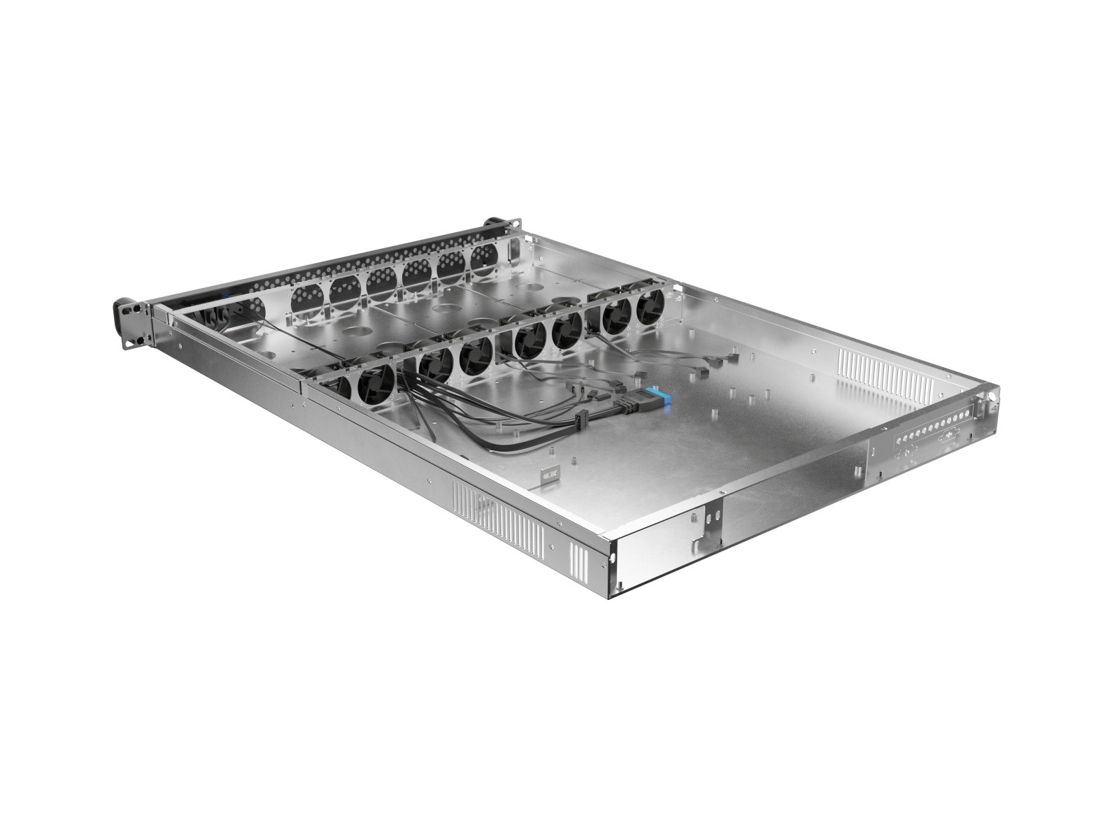 Ez az 1U rack ház nagy teljesítményű szerverek építésére készült minimális magasság mellett. Széles alaplap‑formátumot támogat, beleértve az E‑ATX és SSI EEB szabványokat, több PCI bővítést kezel, és az átgondolt légáramlásnak köszönhetően stabil hőmérsékletet tart fenn hosszan tartó terhelés esetén is. A robusztus, galvanizált 1,2 mm‑es acél hosszú élettartamot és komponensvédelmet biztosít.