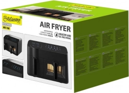 A Maestro forrólevegős sütő modern, hozzáadott zsiradék nélküli főzési módot kínál. A két, 3,5 l és 6 l űrtartalmú, külön kosár lehetővé teszi, hogy egyszerre különböző ételeket készítsen – ideális családoknak és igényesebb felhasználóknak. Az erős, 2400 W-os teljesítmény gyors felmelegedést és egyenletes forrólevegő-keringést biztosít a ropogós eredményért.